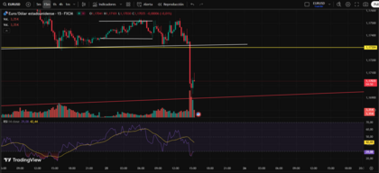 Ruptura temprana con fuerza y volumen, enseguida se dio la vuelta entrando en una tendencia lateral que rozo el SL por los pelos, después decidió volverse para abajo y posiblemente nos salvó la operación una noticia que dio un flashazo a la baja llegando a nuestro TP en 5 minutos.