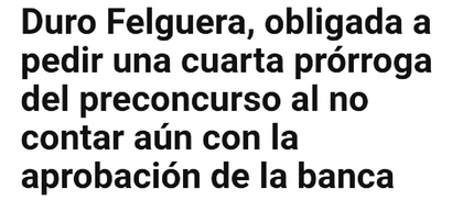 Es increible como pueden ni siquiera comentar las posibles subidas de este chicharro. Hablan de un precio posible de 0,44 eur por accion con una alegría que te deja atónito. Un nivel que lleva más de año y medio sin alcanzar y encima ahora la nueva Duro, aun en preconcurso, con menos activos y menos divisiones que nunca. Y con el negocio en minimos....