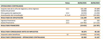 Según ha informado este martes la compañía, su resultado bruto de explotación (Ebitda) ascendió a 140 millones de euros entre enero y junio, cifra un 66% superior a la del primer semestre del año pasado.