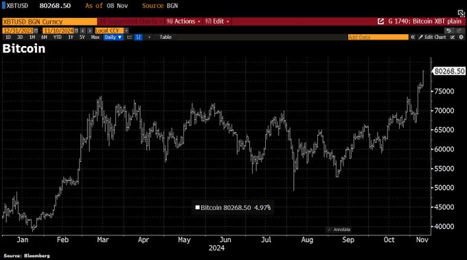 El 6 de noviembre, tras conocerse la clara victoria de Trump en las elecciones, los mercados reaccionaron de manera previsible. La renta variable estadounidense mostró avances, en especial en el sector financiero y en empresas como Tesla, mientras que en Europa se observaron caídas en sectores como el automovilístico y las utilities, afectados por temores a mayores aranceles y menor apoyo a las energías renovables. Este comportamiento fue relativamente esperado, pero lo que sorprendió a muchos fue el ascenso del bitcoin, que también registró un nuevo máximo histórico, superando los 76.000 dólares.