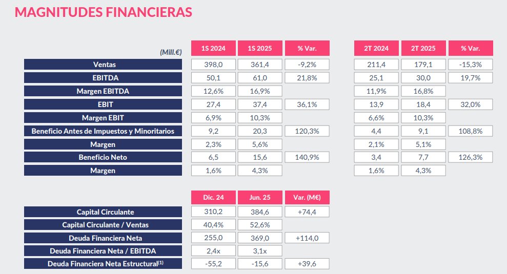 En este entorno de una menor demanda, hemos rebajado nuestras previsiones para el conjunto de 2025 hasta 122 mln eur vs. 155 mln eur anteriores (148 mln eur consenso). En cualquier caso, el mejor comportamiento de la planta de Abu Dabi va a compensar este impacto y permitirá, en cualquier caso, obtener unos resultados muy positivos en línea con los alcanzados en 2024 de 125 mln eur, mejor año de la historia de la compañía.