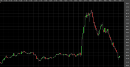 Raro lo que está haciendo el Dow, primero en apertura para arriba con mucha fuerza y luego bajada algo más lenta que ya se ha comido toda la subida. Bien parecido a lo que podría ser un arreón climático alcista justo antes de empezar una corrección (ver gráfico abajo). Y el NQ mientras tanto dando tantas oportunidades de coger largos intradía que empieza a cantar.