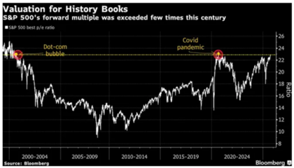 Las valoraciones del SP500 están al nivel post-covid (2021), y burbuja puntocom.