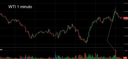Petróleo WTI, sobre los $60 siguen apareciendo ciertas resistencias 'volumenísticas' a dejarlo subir, la mother que los gave birth, que no significa que no pueda romper al alza, pero significa que aún a estos bajos precios hay manos fuertes interesadas en verlo por debajo. Vean el pico de volumen, eso son 66 millones de dólares, no lo hace un cualquiera: