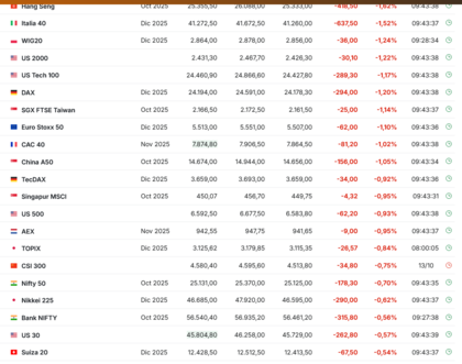 Por el momento Europa en negativo aunque nuestro mercado lo hace bastante mejor que los demás { IBEX -0.29% , DAX -1.00% , Eurostoxx -1.06% } . Los futuros USA rojos ( SP -1.03% , Nasdaq100 -1.27% ) pero si fuesen remontando seguramente harían que Europa también remontase .