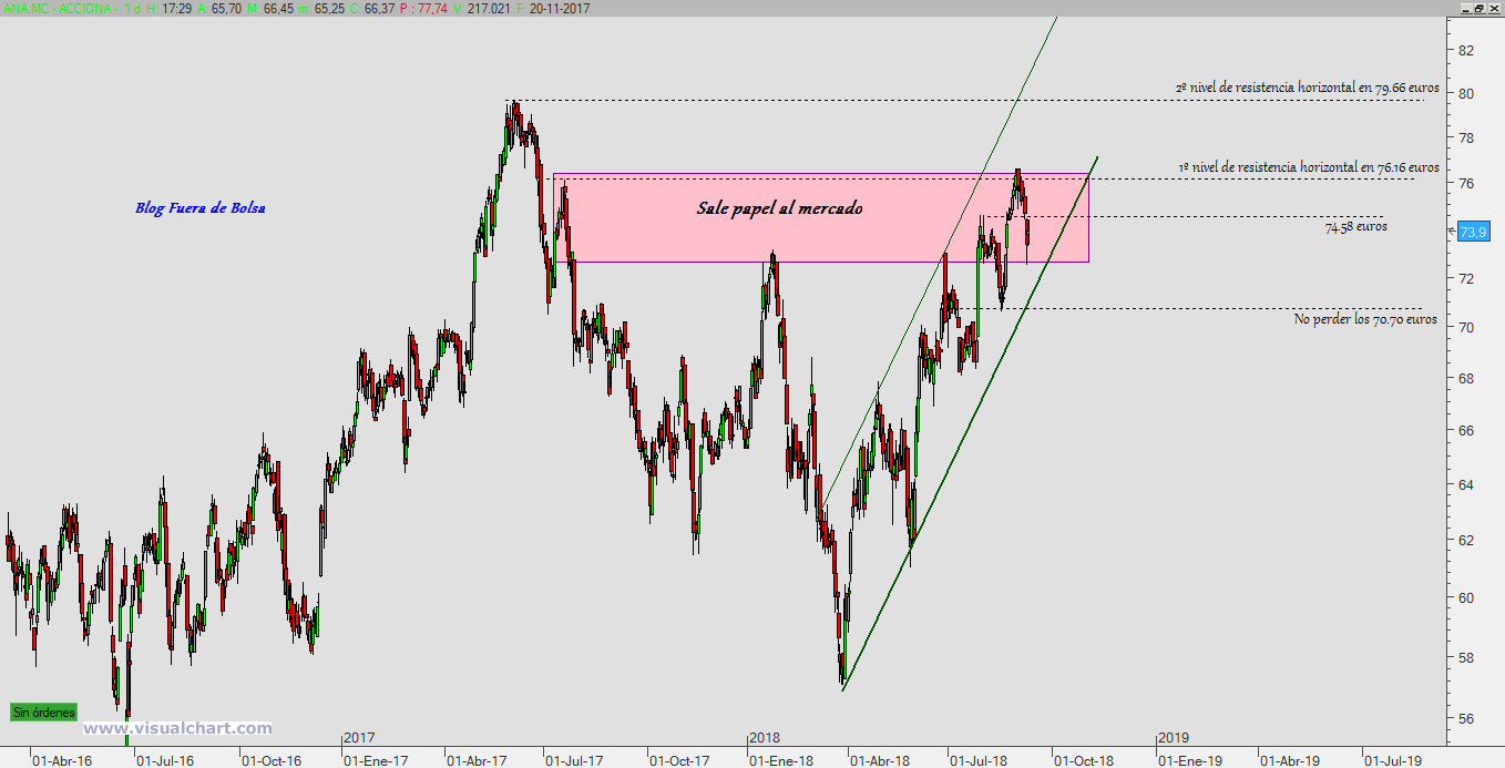 Entiendo que esta corrección debería frenarse y desde aquí, volver a iniciar el ascenso. Si continua bajando, la esperaré sobre los 65€ para comprar más. Creo que ANA es un valor más que seguro y salvo sorpresas, puede dar buenas plusvalías.