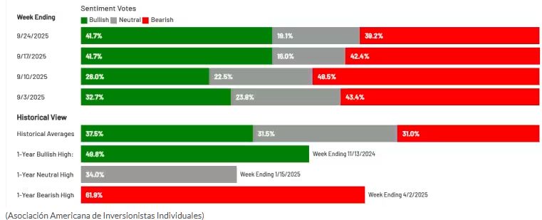 Sin embargo, el porcentaje de inversores bajistas fue del 39,2%, inferior al 42,4% de la semana anterior, pero todavía por encima del promedio a largo plazo del 31%.