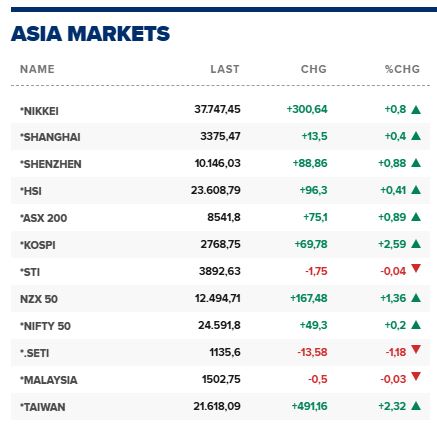 Buenos días ! Así van cerrando los mercados en Asia Pacífico APAC a la espera del crossover en Europa