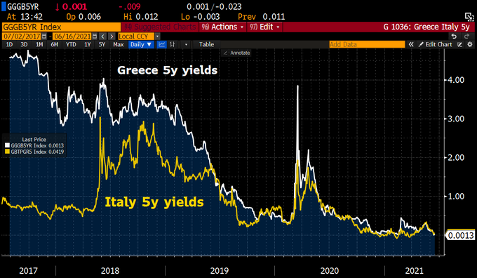 Grecia a tipo cero a 5 años. De esto es imposible que salga nada bueno.