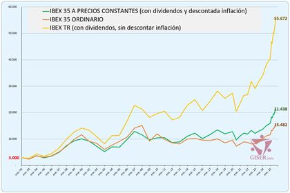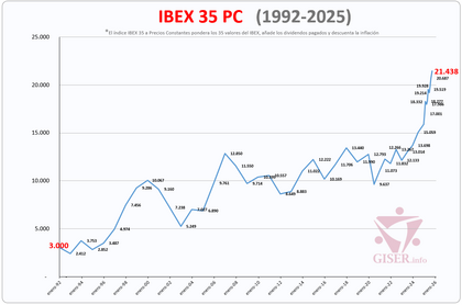 El final de septiembre trae otro mes espectacular en la bolsa española. El índice IBEX PC (que, a diferencia del ordinario IBEX 35 suma los dividendos cobrados, y descuenta la inflación) está, una vez más, en máximos históricos. Y por mucho.