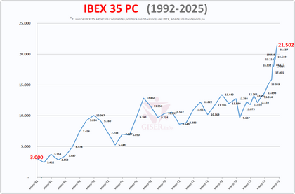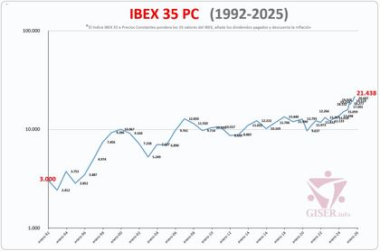 Esto supone una pequeña ganancia adicional en términos reales para los inversores, que ya de por sí vivieron un buen mes. El IBEX PC supera los 21.500 puntos con fecha 30-09-2025.