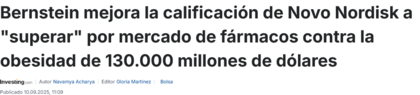 NOVO NORDISK: Bernstein reitera su calificación de «neutral».
