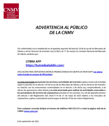 #296 Re: Utbra App Institucional Campox2 Seguir 10/10/25 12:52 El aviso de la CNMVhttps://www.cnmv.es/webservices/verdocumento/ver?e=fs%2fshAPwfMydi5GTeSjbyobgIfO3RtNU2TGg1f2UJVUILCnUAEn6Pt63MwWh%2bqV8 Responder