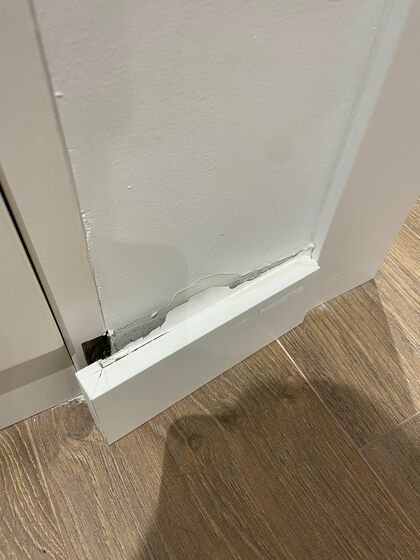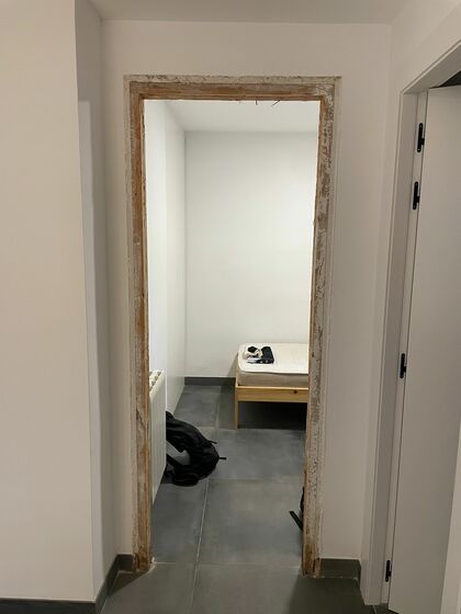 Lo mejor: se da cuenta de que los marcos que tenemos almacenados en una habitación desde junio no valen porque los mandaron de 7cm cuando tenían que haberlos traído de 8cm. Además 1 de las 7 puertas la han fabricado mal. La puerta debía haberse fabricado con la manivela a la derecha y abrir hacia adentro. Todo al revés. Es decir, una de las habitaciones se va a quedar sin puerta no sabemos por cuantos meses más (y sin marco claro, porque ya estaba quitado cuando el montador se dio cuenta del error de fabricación).