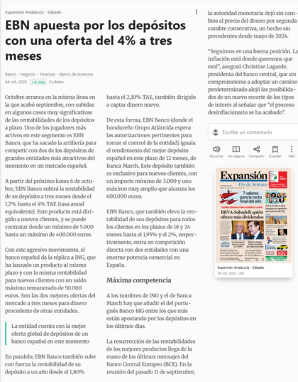 Re: ¿Qué os parecen los depósitos de EBN Banco?