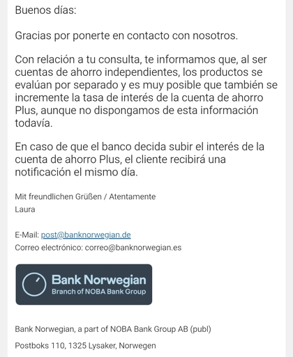 Re: Bank Norwegian sube el interés de su cuenta al 1,25 % TAE