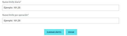Le informo que el límite de transferencias diarias está establecido en 12.000€ pero puede modificar este importe cuando lo necesite. Únicamente, nos tendrá que informar por email de la modificación y le enviaremos un documento para su firma.