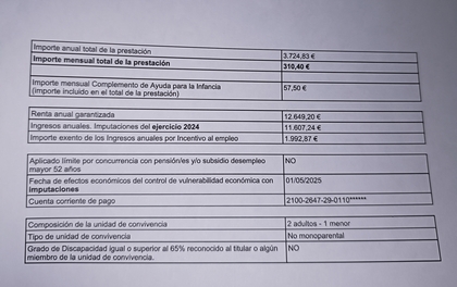 Dime que ingresos tuviste en IRPF 2023 e IRPF 2024 (casillas 0018), la suma de los tuyos como los del otro adulto, y si percibes alguna pensión de alimentos del menor.