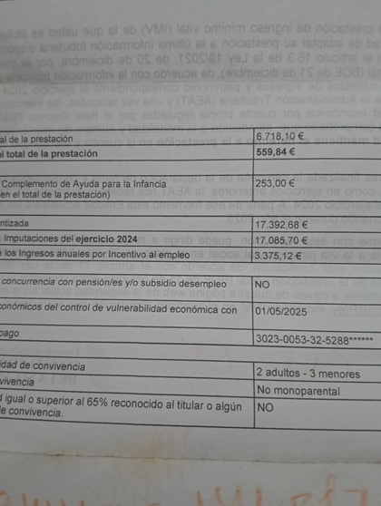 Si en 2024 te salen sobre 11607,24€ que te imputaron de ingresos, los del 2023 serían unos dos mil euros menos, y si son cifras correctas, el IMV que te dejaron en mayo es válido (252,9 mensuales de IMV más 57,50 de CAPI) y además coincidente con el que deberían dejarte en esta revisión de octubre ... el problema es que aparentemente con la revisión de octubre han metido la pata o bien no han terminado de aplicarla todavía y por eso no salen los certificados integrales de prestaciones coincidentes con las fechas y/o cantidades de carpeta ciudadana, pero en teoría para el lunes 13 o a lo peor unos días después ya debería estar todo bien y correcto... hay que esperar...