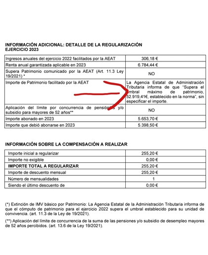 Hola ritekg5! La persona a la que estoy ayudando también acaba de recibir notificación para el cobro de importes indebidos (declaró la ayuda del BONO TÉRMICO). Se indica que el pago será en 1 mensualidad y, además, figura que según la AEAT, "supera el umbral máximo de patrimonio, 52.919,41€, establecido en la norma", sin especificar el importe", que no entendemos bien qué significa (esta persona no poseé dinero ni ningún bien, solo un coche muy viejo de "baja temporal" oficial desde hace muchos años). Sabrías decirme, por favor, qué te parece? Hay derecho de solicitar el fraccionamiento de ese importe? Muchas gracias 🙏🏾