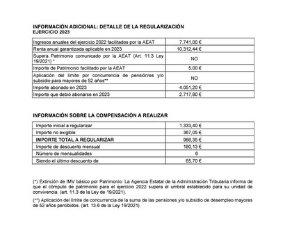 Hola haber si alguien me ayuda me ha llegado una carta que pone que tengo que compensar 1333 euros se quedan en 980 y si tengo menos se reduce al 65%. Ya me lo han dividido en seis meses a descontar pero nos pone qué fecha tiene que descontarlo, y es del año dos mil veintidós 2023 y yo en ese año ya devolvió una cantidad porque ellos ponen que yo he cobrado 365 y en el año 2023 yo no cobraba  365 yo cobraba 190 euros,sabéis dónde puedo mirar lo q han pagado o yo he devuelto en algún sitio.