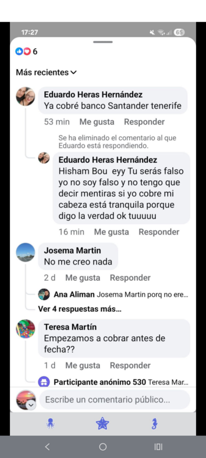 En este foro me he reído (nos hemos reído todos), hace unos meses llegó un nerviosismo que antes no había y hace un mes o dos llegaron los insultos. ¿Alguien me puede decir para qué es este foro sino para estar informados, reírnos, pasar el tiempo mientras nos llega lo único que tenemos de momento? Nos creemos los botines? Pues somos unas p. chanclas y hay que andar con ellas hasta reventarlas y mientras pasa eso se ríe y se llora. Habrá quien insulte, allá él. Que siga la fiesta dentro de lo que cabe.