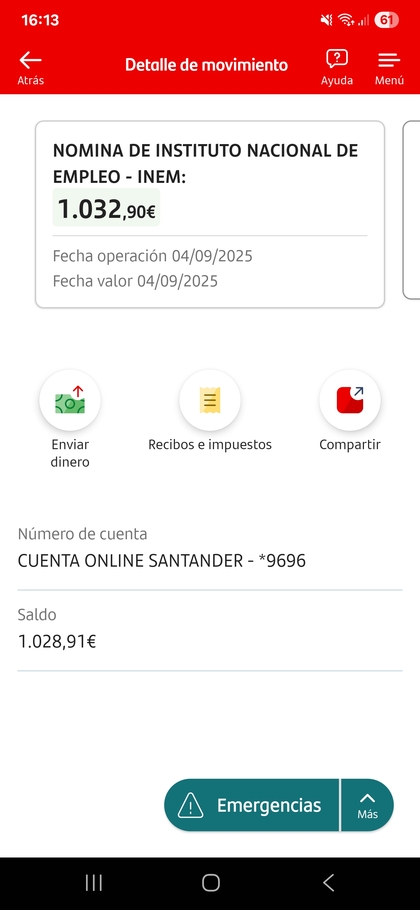 Re: Pago subsidio septiembre 2025 banco Santander - paro