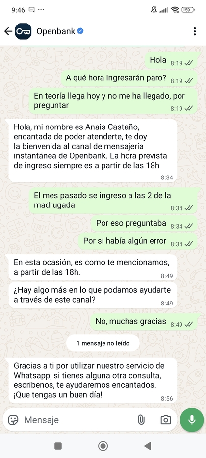 A mí me llegó la notificación el mes pasado de que se cobraba el 3 a partir de las 18:00 y mira los pantallazos que e subido antes ,el otro compi de aquí a las 2:13 ya estaba cobrado y a mí me llegó el mensaje de que había recibido el ingreso del paro a las 8:30 de la mañana casi 10 horas antes de lo que nos dijeron, ojalá cobremos o está noche o mañana, también lo que digo me baso en el mes pasado y con pantallazos que no digan que me lo invento, pero es así jesunil