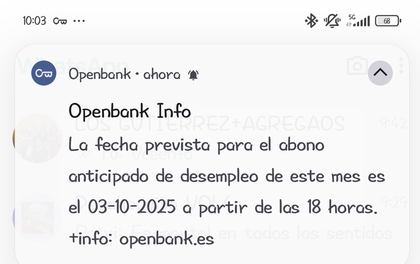Pero vamos, opino como la mayoría - si Mediolanum paga mañana al medio día día (15/17 de la tarde) casi seguro que open cobraremos la madrugada del 2 al 3, al menos ha sido ha sido durante todo este año que estoy cobrando la prestación en open.