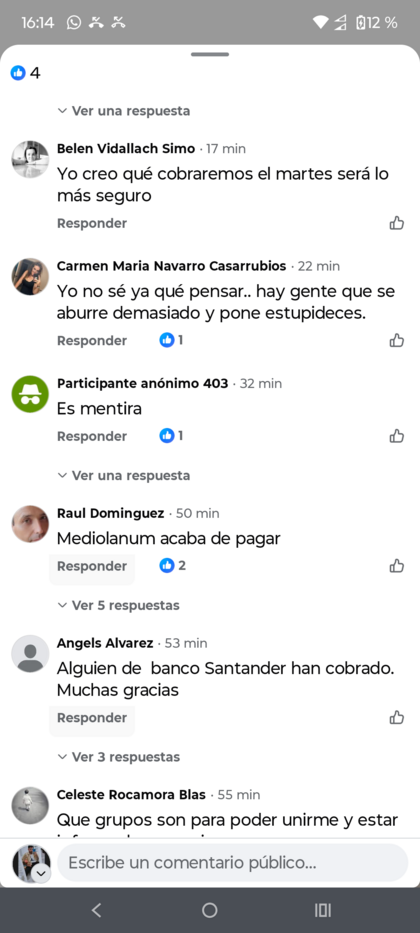 De verdad nos iría mejor sin especulaciones Santander ya lo tendrá automatizado , pero ninguno sabemos ni la hora ni el día ,que yo tenga un pensamiento me lo guardo para no incomodar a personas que están esperando ..no puede ser que uno diga el lunes , otro está tarde y otro de madrugada , os vais a poner nerviosos ,