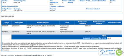 estos son los datos de 2024 al ser autonomo los datos fiscales no hay mas a exepcion de unas otras ayudas que se que tu va a cerlas que ya salen en la renta con valor total de 1412,11 resultado de bono termico una beca de estudios local y una bonoficacion de la cuota autonomo por parte de la comunidad de madrid