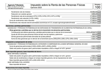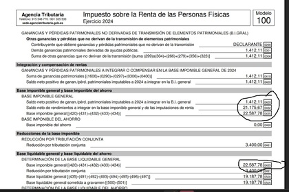 A ver, lo suyo es ver el IRPF en su conjunto, no fragmentos del mismo que tú le hagas un circulito... tapa datos personales y excepto la portada ponlos por acá que se vean completos... ahora mismo para empezar echo en falta ver que te pone la casilla 0224 del IRPF 2024 o si hay una 0018 por algún lado si es un IRPF conjunto como dices y saber si es IRPF conjunta si hay otras personas que se les haya imputado ingresos o que pasa con las otras declaraciones de ingresos de la otra persona... habría que ver (si existen en tu IRPF) que pone en las casillas 0041 / 0051 / 0060 / 0259 / 0389 / etc, etc.