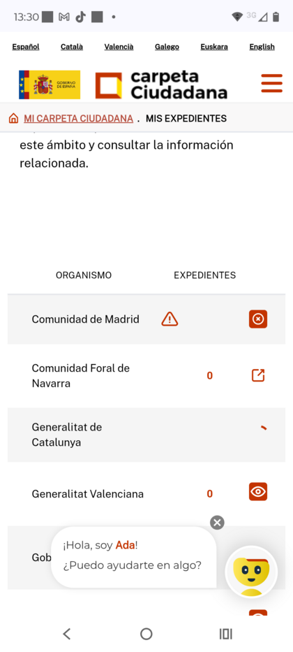 Os dejan entrar en la pagina de la carpeta ciudadana?a mí me sale error no me deja entrar