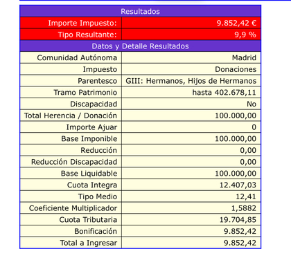 Simulador de impuesto de donaciones para la Comunidad de Madrid