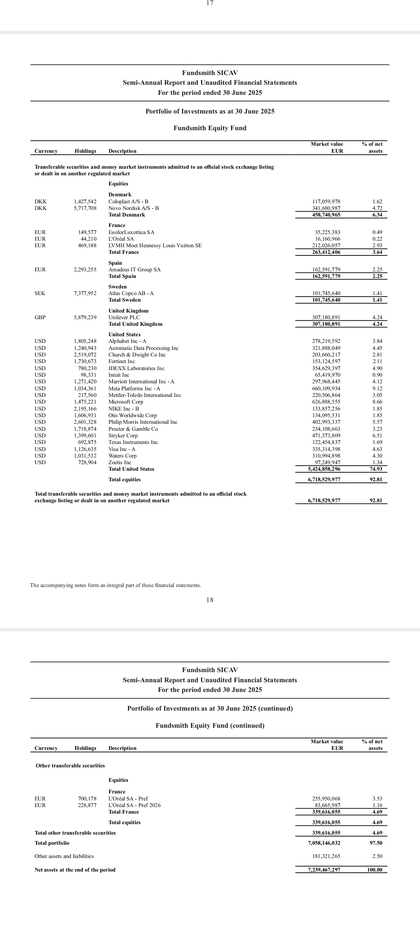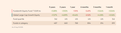 El enfoque de Terry Smith queda reflejado en la cartera al 30 de junio de 2025. Meta Platforms, Microsoft, Stryker, Philip Morris y L'Oréal encabezan el fondo, todas ellas negocios con marcado liderazgo, capacidad clara de reinversión y activos intangibles (marca, tecnología, red comercial, fidelidad de clientes). La apuesta por empresas como Visa, Alphabet, Novo Nordisk, Unilever, Procter & Gamble o ADP enfoque en sectores defensivos, consumo estable, salud, tecnología y servicios que pueden generar ingresos recurrentes y sortear ciclos económicos.