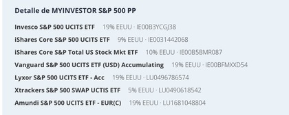 Mirando este foro pensé en traspasarlo a un pp indexado. Ya tengo contratado el fondo Amundi MSCI WORLD, pero veo que no hay algo similar en cuanto a PP, están los roboadvisors estos de myinvestor, pero me choca que compren fondos o ETF variados de un mismo producto, MSCI WORLD o SP500 ¿Por qué comprar varios productos de lo mismo?
