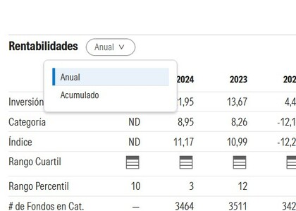 Debajo del gráfico, donde pone "rentabilidades" hay un menú desplegable donde puedes elegir entre la rentabilidad anual y la acumulada.