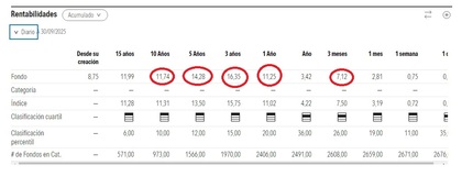 En acumulado te está sacando la rentabilidad que llevaba a fecha del último trimestre (30/6/25).