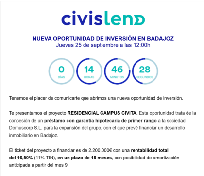Va a ser cosa de irse a Wecity, Civislend o BDKapital -este saca pocos-, e incluso a SegoReal Estate.