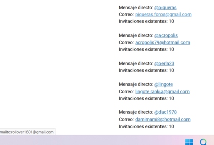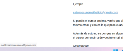 por cierto hay que revisar los enlaces de los email, me he metido en este hilo y hay varios emails que falta una letra y otros cruzados. esto pasa cuando alguien copia los datos de otro para poner igual en nombre: enlace: email: y solo cambiamos el texto, pero al pegar el enlace de ese email se queda el antiguo, así aparece una cosa al leerlo pero si pones el cursor encima o hace click sale otro y en otro ha desaparecido la primera letra en el enlace.