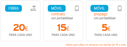 Si contratas varias líneas, se sumarán los importes de cada una de ellas. Aquí tienes las tarifas de SIMYO para que hagas la contratación. Además puedes continuar ganando cientos de euros invitando a tus amigos, aquí está toda la información sobre el Plan Amigo