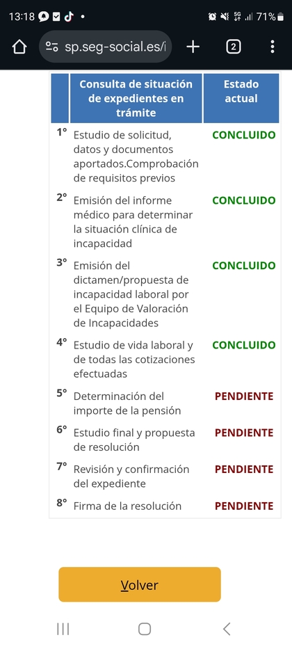 Como lo veis ? El 23/07 pase inspección(544 día )el inspector me dijo que me extendia 6 meses más debido a la enfermedad y espera de que me viera el cirujano. El 05/08 inicio de oficio de icp, el 09/09 compruebo punton y tengo 1,2,3 y 4 completados a dia de hoy no me ha desaparecido ningun punto hace 5 dias mande carta telematica con info que pidieron rellenar, datos bancarios e hijos...